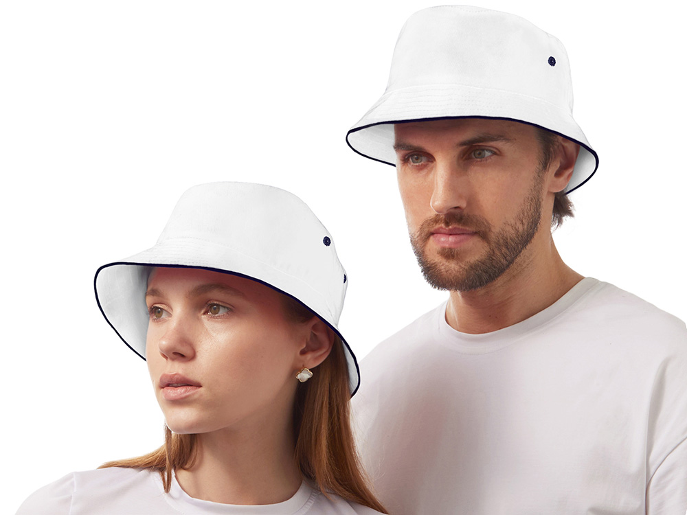Панама из хлопкового твила с контрастным кантом и контрастными вентиляционными отверстиями. Панама подойдет как мужчинам, так и женщинам.