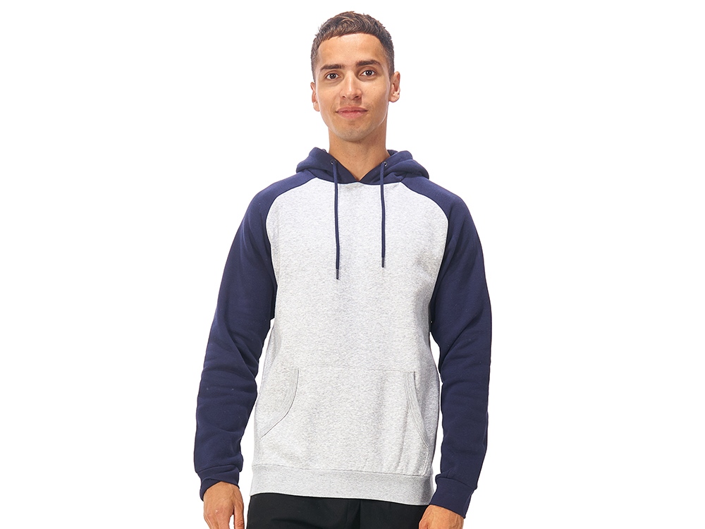 Толстовка с капюшоном (худи) из плотного футера с мягким начесом внутри. Модная и практичная модель, подходит для прогулок по городу, активного отдыха, путешествий и, конечно, промо мероприятий. - Прямой силуэт. - Контрастный рукав реглан и капюшон. - Капюшон с подкладкой из основного материала с металлическими люверсами, круглым шнуром с металлическими наконечниками. - Удобный карман-кенгуру, край отделан рибом 1х1. - Низ толстовки и манжеты рукавов обработаны рибом 1x1. - Полотно с небольшим содержанием полиэстера долго сохраняет форму и не мнется.