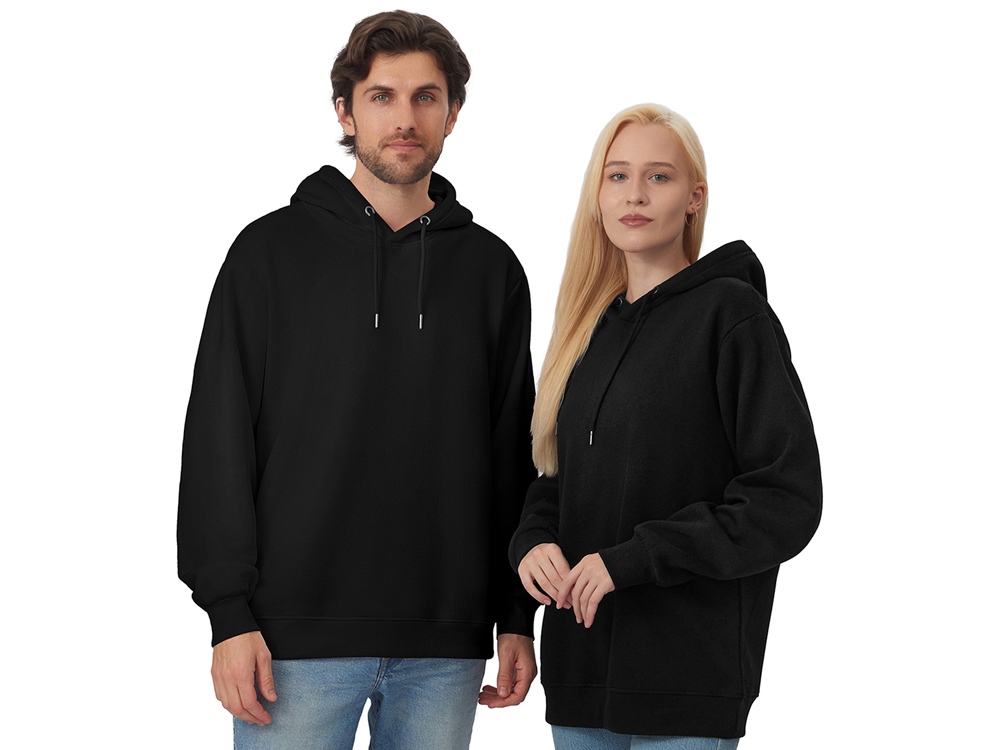 Толстовка с капюшоном из мягкого флиса из смеси хлопка и полиэстера. Модель комфортной и актуальной посадки оверсайз отлично подходит для обычной жизни и в качестве промо мерча. - оверсайз посадка - удобный капюшон на подкладке -мягкое и уютное полотно из смеси хлопка и полиэстеры - Низ и рукава обработаны манжетами из риба 2х2 и дополнительно отстрочены для укрепления - увеличенная зона для нанесения из-за отсутствия кармана