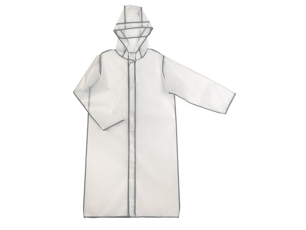Плащ-дождевик на кнопках с капюшоном «Providence» Непромокаемый материал EVA - современный и лёгкий Удлиненная модель Прямой крой, втачной рукав Регулировка ширины рукава по низу при помощи кнопки Капюшон с козырьком и утягивающим шнуром Полупрозрачный с цветной окантовкой Складывается в компактную сумку-чехол на кнопках